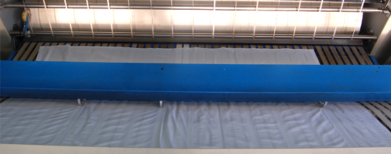In seguito la biancheria è sottoposta ad un processo di asciugatura per poi passare al trattamento della stiratura che avviene in due diversi impianti da stiro per le diverse tipologie di biancheria al fine di fornire un alto standard qualitativo.